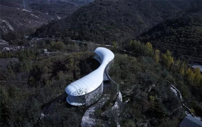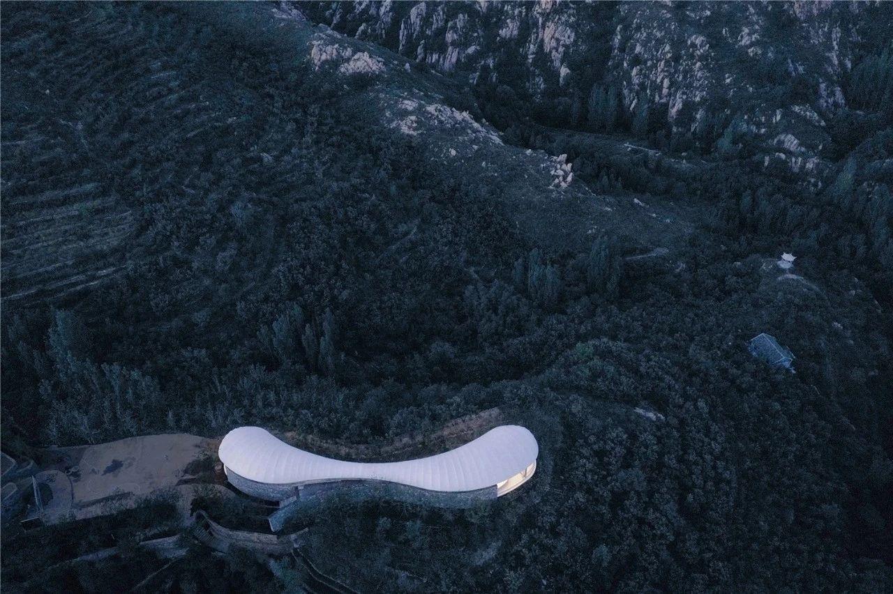 九女峰書(shū)房位于區(qū)域的至高處,有“登高望遠(yuǎn)”之意。獨(dú)特的建筑動(dòng)線(xiàn)與起伏岑寂的山脈、潺潺的泉水相呼應(yīng),像一朵云彩延綿無(wú)盡,有一種靜止的流暢。建筑選取的特殊構(gòu)造的超輕材質(zhì),經(jīng)得起狂風(fēng)驟雨驕陽(yáng)冰霜的考驗(yàn)同時(shí)又超輕環(huán)保。書(shū)房?jī)?nèi)部選用白色為主色調(diào),打造出一個(gè)思維豐盈的閱讀空間,與周?chē)h(huán)境及整體泰安大背景形成強(qiáng)烈的沖擊對(duì)比,為了看見(jiàn)而留白,簡(jiǎn)約中體會(huì)日益豐富。創(chuàng)造一個(gè)屋檐下的共享達(dá)悟生活的文化之所,在這里,時(shí)間不存在,空間在縮小,但你的思緒可以放得無(wú)限遼闊。