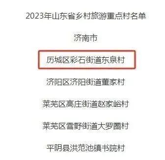 11月7日,省文旅廳、省發(fā)改委、省農(nóng)業(yè)農(nóng)村廳發(fā)布《關(guān)于公布2023年山東省鄉(xiāng)村旅游重點(diǎn)村名單的通知》,歷城區(qū)彩石街道東泉村成功入選。