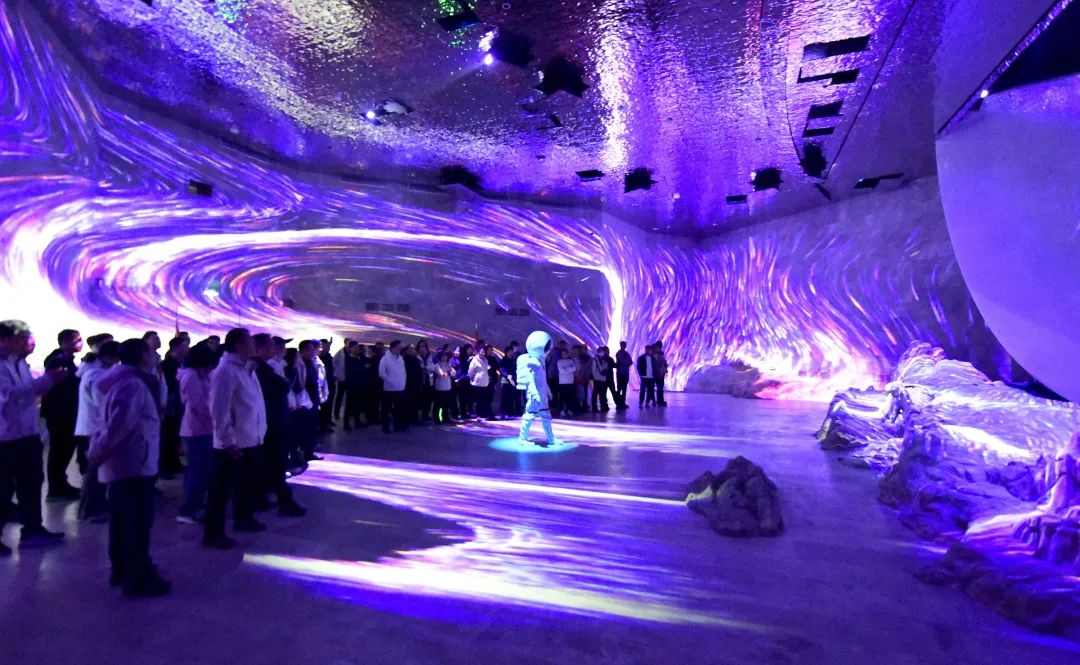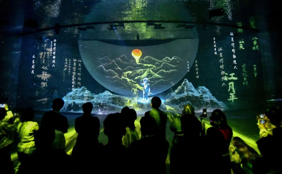 故鄉(xiāng)的月藝術空間意在塑造一輪“永不落幕的月亮”。建筑融合了濃郁的鄉(xiāng)愁文化和自然風貌,將一輪“滿月”對半分開,又在室外室內(nèi)分別借助水面和水波紋板,用“倒影”予之圓滿,以一輪“故鄉(xiāng)的月”,承載儀式儀典的精神價值和觀游體驗的美學價值。藝術空間先后榮獲Dezeen年度十大中國建筑項目、山東省文化和旅游廳“年度網(wǎng)紅打卡地”等獎項。此外,九女峰項目結合建筑獨有的半月特色,充分利用360度環(huán)屏、主舞臺紗幕和地面投影,打造了故鄉(xiāng)的月沉浸式演出。演出以月為靈感源泉,以情為心靈紐帶,將異想的戲劇空間與真實的現(xiàn)實空間相結合,以如詩如畫的藝術表達,觸動共鳴共通的情感與鄉(xiāng)愁。