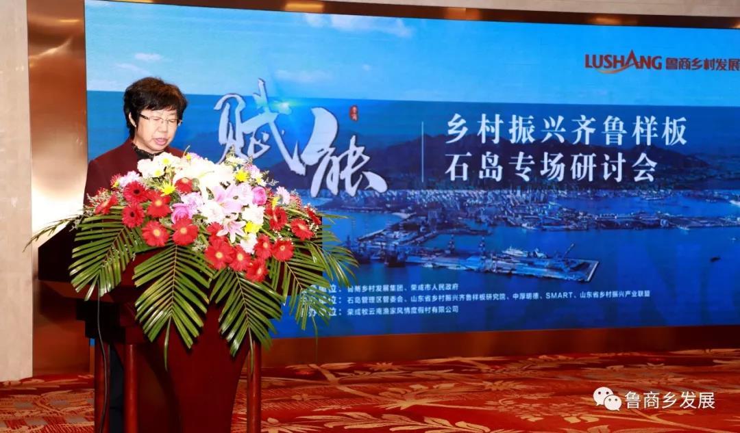 李洪霞對本次專場研討會在石島舉行表示歡迎。她在致辭中介紹了榮成的基本情況及鄉(xiāng)村振興戰(zhàn)略實施情況。榮成市是漁農(nóng)經(jīng)濟結(jié)合的濱海城市,近年來,榮成市搶抓美麗鄉(xiāng)村建設(shè)機遇,啟動22處鄉(xiāng)村振興樣板片區(qū)建設(shè),加快推進農(nóng)業(yè)農(nóng)村現(xiàn)代化,先后獲批全國首批生態(tài)文明建設(shè)示范市、全國休閑農(nóng)業(yè)與鄉(xiāng)村旅游示范縣,成功入選全省首批鄉(xiāng)村振興“十百千”示范縣。李洪霞表示,本次研討會將為榮成鄉(xiāng)村振興發(fā)展灌輸先進理念、注入新鮮血液、增添新生動力,希望參會人員積極學(xué)習(xí)借鑒先進做法和成熟經(jīng)驗,推動鄉(xiāng)村振興工作邁上新臺階。