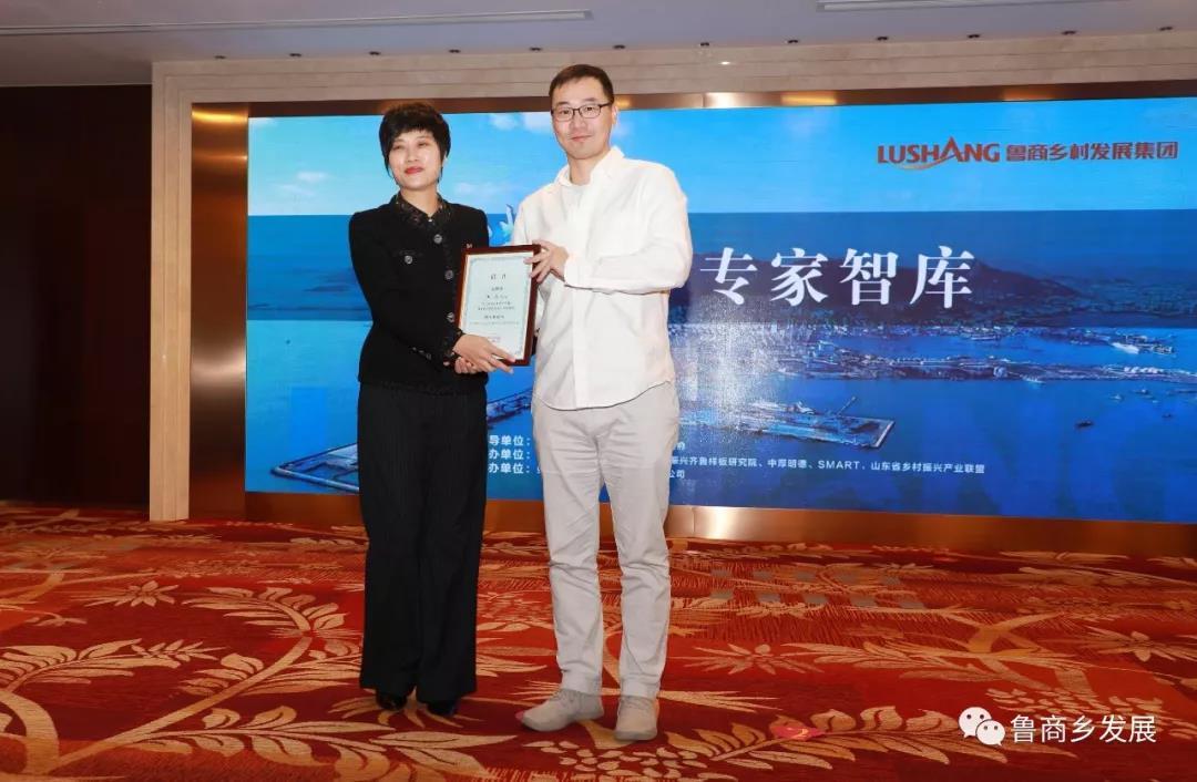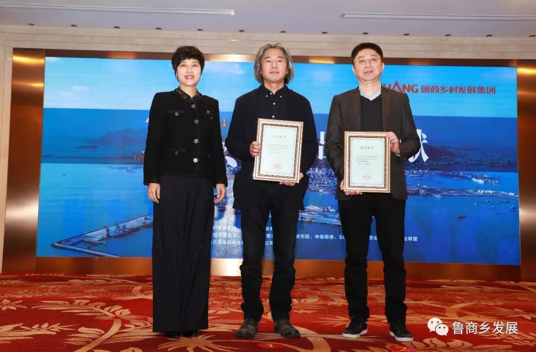 研討會啟動儀式結(jié)束后,舉行了魯商鄉(xiāng)村振興戰(zhàn)略實施2019年度突出貢獻智庫專家頒獎儀式,袈藍建筑設(shè)計事務(wù)所創(chuàng)始人兼主持建筑師、新田園主義實踐者聚落“袈藍公社”創(chuàng)辦人鄒迎晞,山東世聯(lián)怡高物業(yè)顧問有限公司副總經(jīng)理聶非獲獎,李華為他們頒發(fā)了獲獎證書。