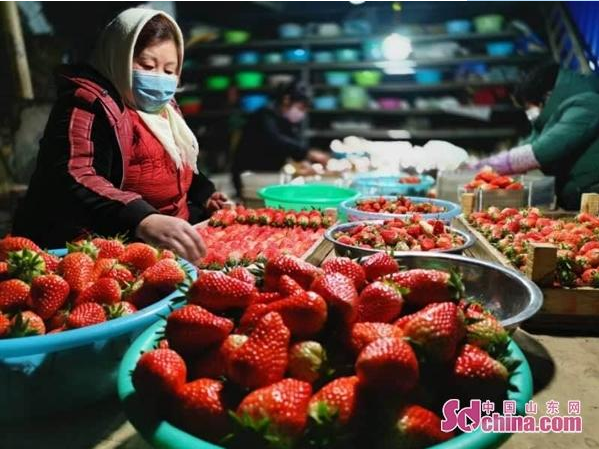 平度最大的草莓批發(fā)市場——白沙河街道巡寨草莓市場工人正在集中包裝草莓準(zhǔn)備外運(yùn)