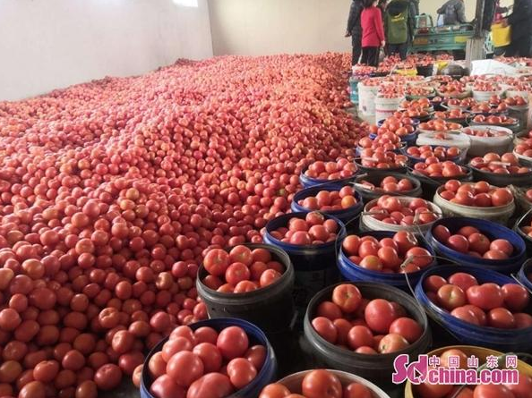 在崔家集鎮(zhèn)青島農(nóng)恩蔬菜專業(yè)合作社,剛剛摘下的大西紅柿馬上要包裝外運(yùn)