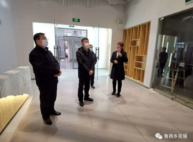 李國強(qiáng)一行先后參觀了招商服務(wù)中心、鄉(xiāng)創(chuàng)展廳以及園區(qū)建設(shè)實(shí)況,山東魯商鼎好控股有限公司總經(jīng)理徐迎向領(lǐng)導(dǎo)介紹了園區(qū)老建筑改造歷程,現(xiàn)階段園區(qū)建設(shè)狀況以及未來發(fā)展規(guī)劃。