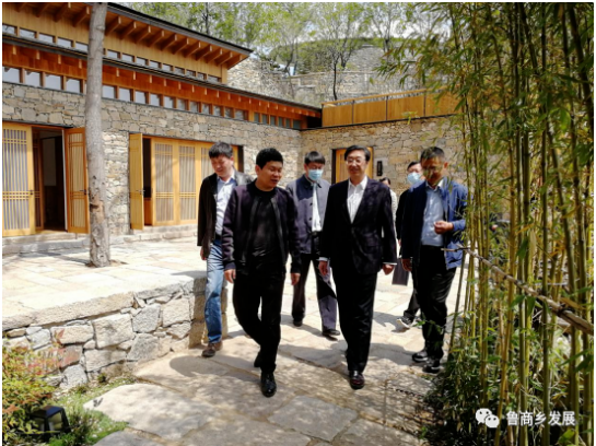 楊少軍一行先后參觀了里峪綜合服務(wù)中心、八樓村民宿、故鄉(xiāng)的云民宿及度假區(qū)其它產(chǎn)業(yè)項目,對魯商九女峰鄉(xiāng)村旅游度假區(qū)整體規(guī)劃、建設(shè)、運營等情況進(jìn)行了全面了解,并在道朗鎮(zhèn)政府召開了座談會。
