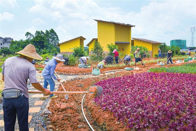 工作人員正在給村里景點換“新裝”。目前,源城區(qū)埔前鎮(zhèn)陂角村打CALL點的宜居綠化、文化景點等進行提升改造,以新的姿態(tài)展現(xiàn)鄉(xiāng)村振興風貌。