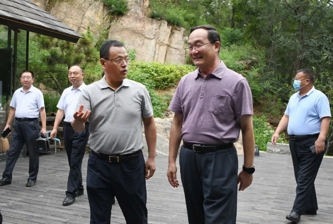 7月3日,省委統(tǒng)戰(zhàn)部副部長、省工商聯(lián)黨組書記周云平一行到九女峰項目調研。魯商集團黨委副書記、山東文旅集團總經(jīng)理劉守亮,泰安市人大常委會副主任、工商聯(lián)主席王淑玲,泰安市委統(tǒng)戰(zhàn)部副部長、工商聯(lián)黨組書記高樹順,岱岳區(qū)區(qū)委常委、統(tǒng)戰(zhàn)部長袁義明等陪同。