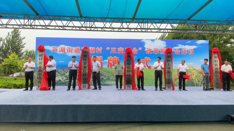 8月15日,蘆湖街道蘆湖村“三變五合”改革股份合作社揭牌儀式在蘆湖村太平魏文化廣場(chǎng)舉行