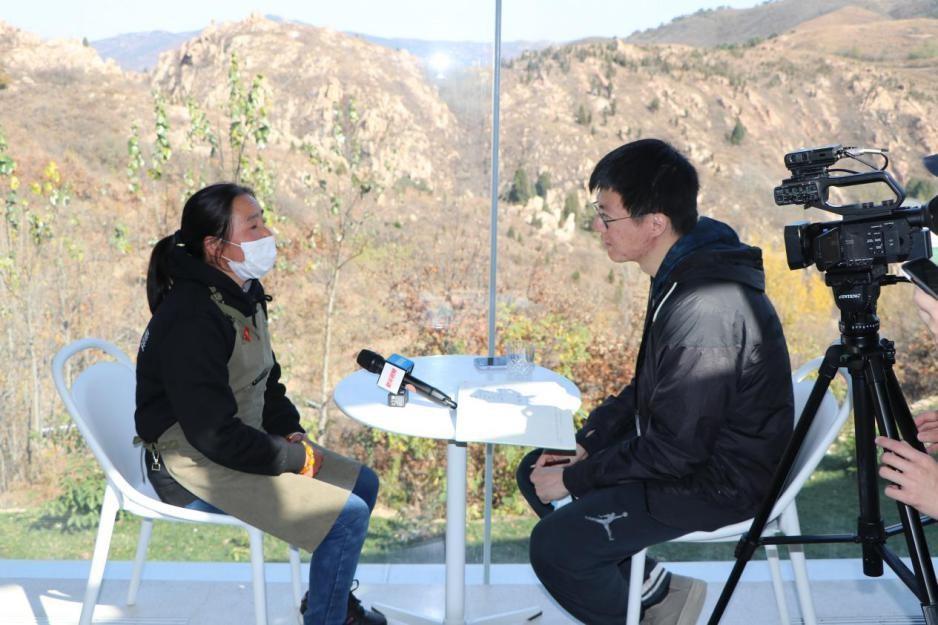 新華社記者在九女峰書房采訪東西門村就地就業(yè)的村民楊慶花
