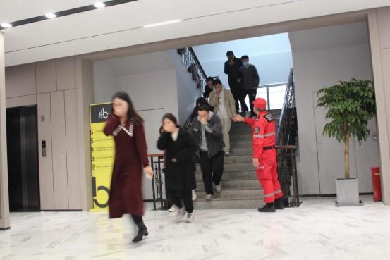 本次演練采取情景模擬和現(xiàn)場(chǎng)演練相結(jié)合的方式進(jìn)行。當(dāng)工作人員按響聲光報(bào)警器后,辦公樓內(nèi)各樓層撲救員迅速取出滅火器進(jìn)行撲救,報(bào)警員、疏散員立即組織人員快速有序疏散,同時(shí),安保人員接到報(bào)警后快速到達(dá)著火點(diǎn),打開(kāi)消火栓進(jìn)行撲救,最終險(xiǎn)情被及時(shí)控制,人員均疏散至室外安全位置。