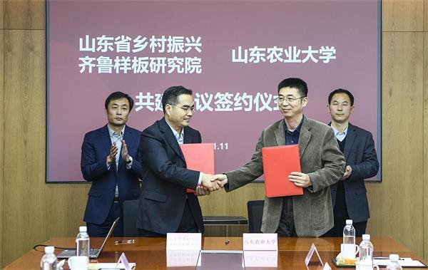11月18日,山東農業(yè)大學(簡稱“山農大”)與山東省鄉(xiāng)村振興齊魯樣板研究院(簡稱“齊魯樣板研究院”)大學生思想政治教育實踐基地簽約暨揭牌儀式,在位于泰山·九女峰鄉(xiāng)村振興項目的齊魯樣板研究院舉行。山農大黨委常委、副校長辛杰,學工處處長王群,資源與環(huán)境學院(簡稱“資環(huán)學院”)黨委書記馮國營,魯商鄉(xiāng)村發(fā)展集團(簡稱“鄉(xiāng)發(fā)展集團”)黨委書記、董事長張建峰參加活動。