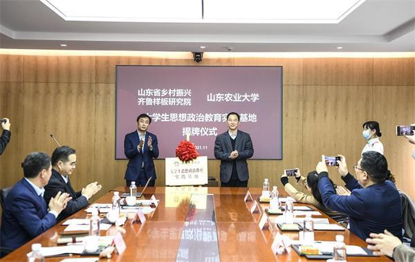 在簽約暨揭牌儀式上,雙方簽署了《共建協(xié)議書》,并為“山東農業(yè)大學大學生思想政治教育實踐基地”揭牌。