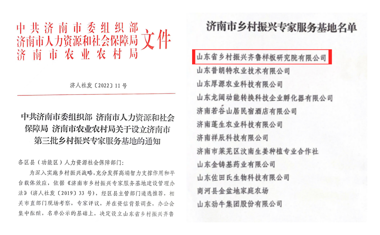 6月20日,濟南市第三批鄉(xiāng)村振興專家服務(wù)基地名單公布,山鄉(xiāng)集團所屬山東省鄉(xiāng)村振興齊魯樣板研究院(以下簡稱研究院)位列首位成功入選。本次評定由中共濟南市委組織部、濟南市人力資源和社會保障局、濟南市農(nóng)業(yè)農(nóng)村局組織開展,旨在充分發(fā)揮高端智力支撐作用和平臺載體效應(yīng),推進鄉(xiāng)村振興戰(zhàn)略深入實施。