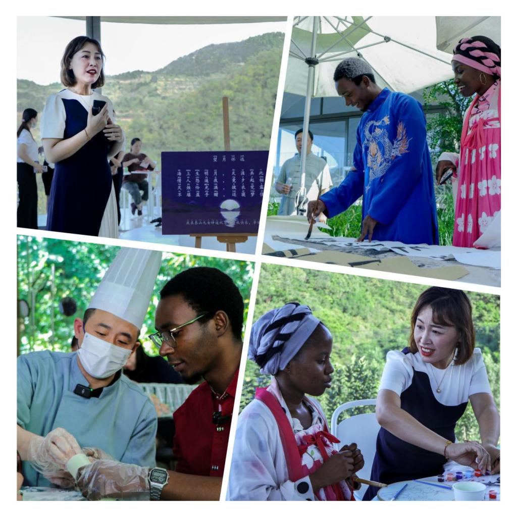 在故鄉(xiāng)的云“云滋味”餐廳,留學(xué)生們“入鄉(xiāng)隨俗”,體驗(yàn)起制作冰皮月餅的樂趣。雖然來中國快六年了,但巴基斯坦的慕明輝今天是第一次制作和品嘗月餅,對他來說這是一次新奇的體驗(yàn)。“海上生明月,天涯共此時(shí)……”在九女峰書房,山鄉(xiāng)集團(tuán)故鄉(xiāng)的云(泰安)文化旅游發(fā)展有限公司總經(jīng)理許欣用英語為留學(xué)生們講述中秋節(jié)的典故,吟誦有關(guān)詩詞。在自主選擇體驗(yàn)中國傳統(tǒng)文化環(huán)節(jié),留學(xué)生們還體驗(yàn)了團(tuán)扇繪制、剪窗花、寫書法,近距離感受非遺文化魅力。