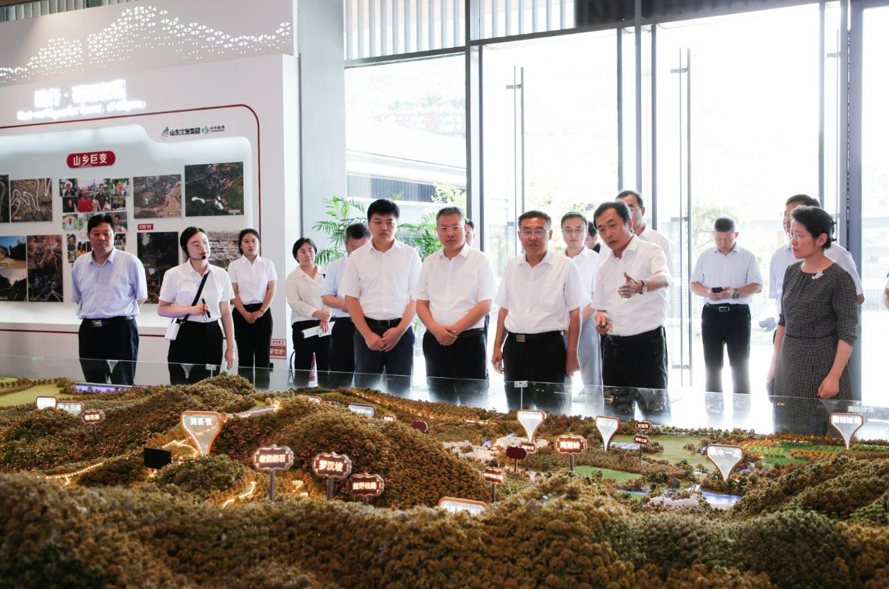 盧映川一行先后來到山東省鄉(xiāng)村振興齊魯樣板研究院、九女峰書房實(shí)地調(diào)研,聽取項(xiàng)目策劃規(guī)劃及建設(shè)運(yùn)營等情況匯報(bào),對(duì)山東文旅集團(tuán)堅(jiān)持文旅融合發(fā)展、助力鄉(xiāng)村振興,按照“一村一品”“一村一韻”高水平打造鄉(xiāng)村旅游度假區(qū)的做法和成果給予充分肯定;對(duì)九女峰項(xiàng)目打造開放空間和合作平臺(tái),與村民共建、共生、共享,同時(shí),引入更多企業(yè)和個(gè)人參與鄉(xiāng)村振興的做法表示贊賞。盧映川強(qiáng)調(diào),要進(jìn)一步豐富旅游業(yè)態(tài)和產(chǎn)品供給,向廣大游客提供更加個(gè)性化、多樣性的產(chǎn)品和服務(wù),吸引更多人來到九女峰,感受綠水青山的魅力。要持續(xù)探索文旅產(chǎn)業(yè)賦能鄉(xiāng)村振興的新路子,不斷拓寬農(nóng)民增收致富渠道,帶動(dòng)群眾持續(xù)穩(wěn)定增收。