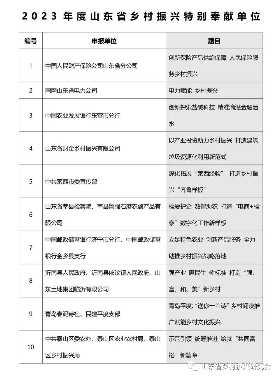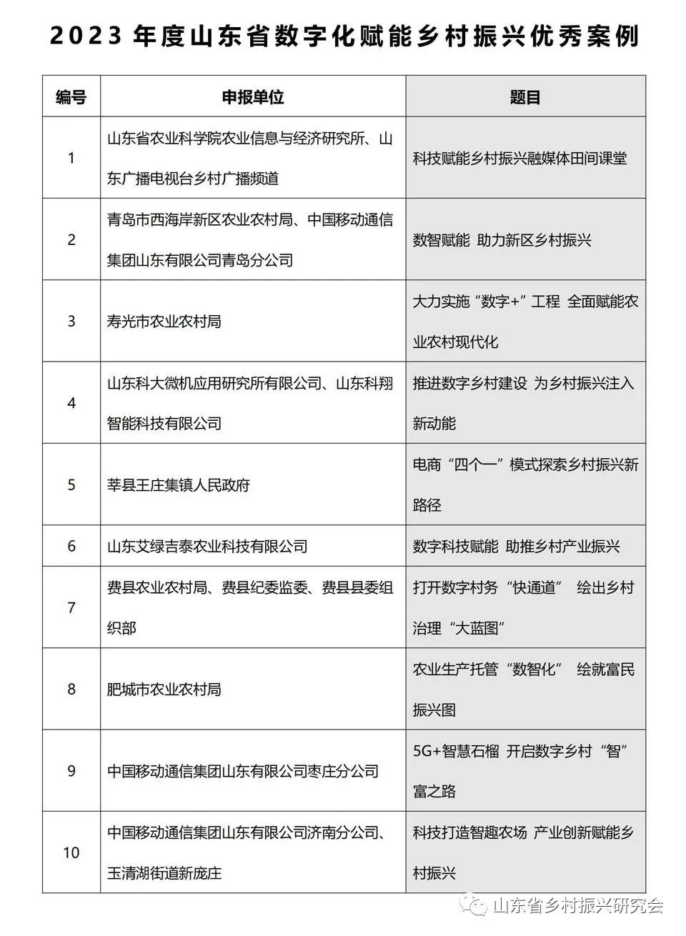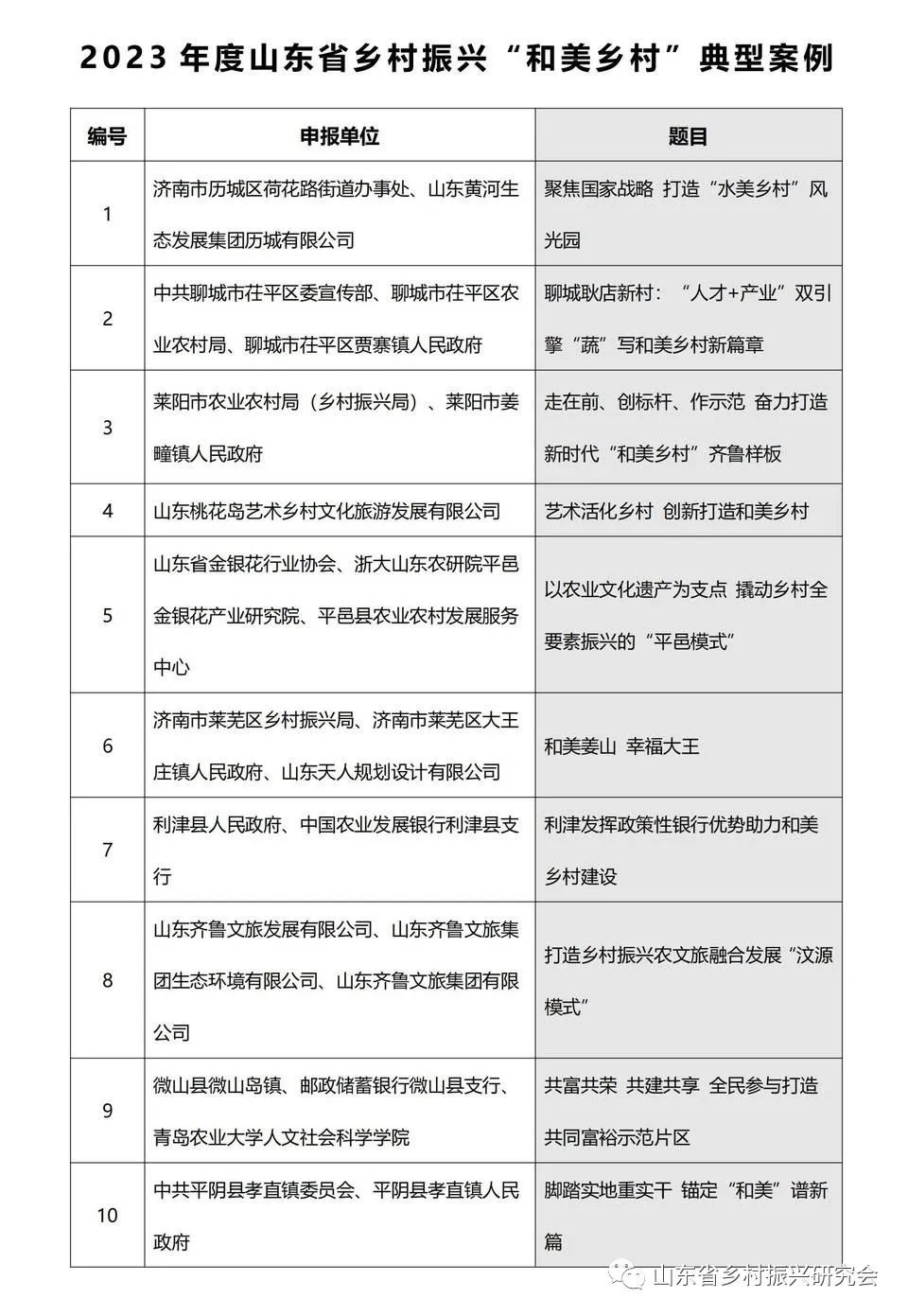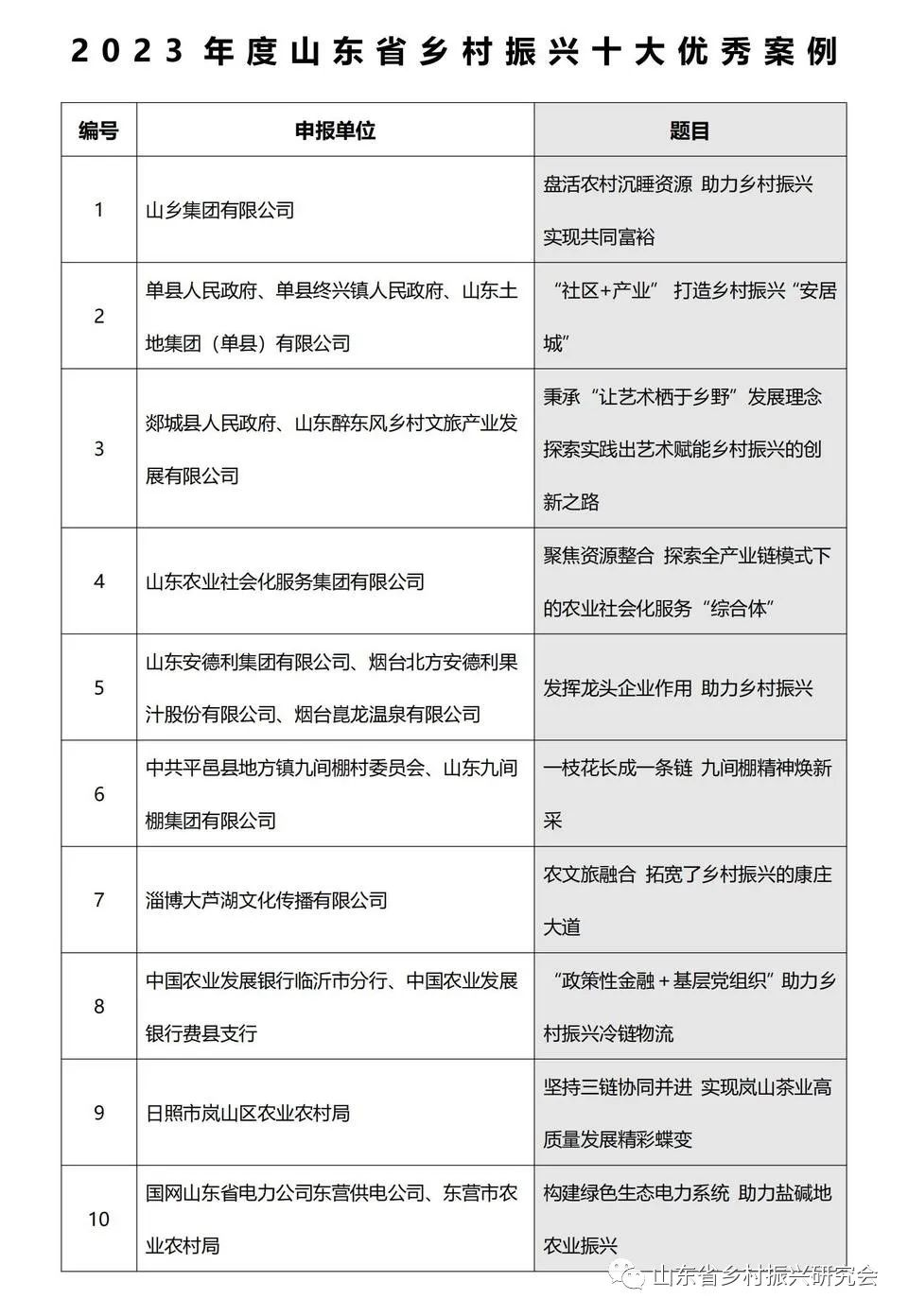 其中,《盤活農(nóng)村沉睡資源 助力鄉(xiāng)村振興 實(shí)現(xiàn)共同富?!返?0個(gè)案例獲評(píng)“2023年度山東省鄉(xiāng)村振興十大優(yōu)秀案例”;《聚焦國家戰(zhàn)略 打造“水美鄉(xiāng)村”風(fēng)光園》等10個(gè)案例獲評(píng)“2023年度山東省鄉(xiāng)村振興‘和美鄉(xiāng)村’典型案例”;《科技賦能鄉(xiāng)村振興融媒體田間課堂》等10個(gè)案例獲評(píng)“2023年度山東省數(shù)字化賦能鄉(xiāng)村振興優(yōu)秀案例”;中國人民財(cái)產(chǎn)保險(xiǎn)公司山東省分公司等單位獲評(píng)“2023年度山東省鄉(xiāng)村振興特別奉獻(xiàn)單位”。鄉(xiāng)村振興優(yōu)秀案例的評(píng)選,將進(jìn)一步促進(jìn)相互學(xué)習(xí)借鑒,為各單位、企業(yè)賦能,助力山東省鄉(xiāng)村振興工作的扎實(shí)開展。