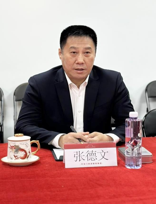 張德文對丁藝一行表示歡迎,介紹了天安門旅游服務(wù)集團發(fā)展歷程和業(yè)務(wù)開展情況,希望雙方能夠優(yōu)勢互補,在鄉(xiāng)村振興、研學、新媒體業(yè)務(wù)等方面進行深入合作。