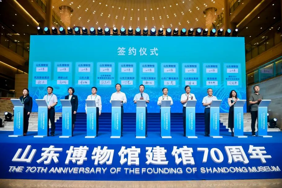 2024年7月25日,山東博物館建館70周年暨博物館教育與研究研討會(huì)開幕式在山東博物館一樓禮儀大廳隆重舉行。山東省副省長(zhǎng)、省政府黨組成員溫暖,國(guó)家文物局博物館與社會(huì)文物司司長(zhǎng)劉洋,中國(guó)文物學(xué)會(huì)會(huì)長(zhǎng)顧玉才,中國(guó)博物館協(xié)會(huì)理事長(zhǎng)劉曙光,山東省文化和旅游廳黨組書記、廳長(zhǎng)、省文物局局長(zhǎng)王磊共同啟動(dòng)山東博物館建館70周年系列展覽。山東文旅集團(tuán)黨委書記、董事長(zhǎng)丁藝受邀出席開幕式并與山東博物館簽訂戰(zhàn)略合作協(xié)議。