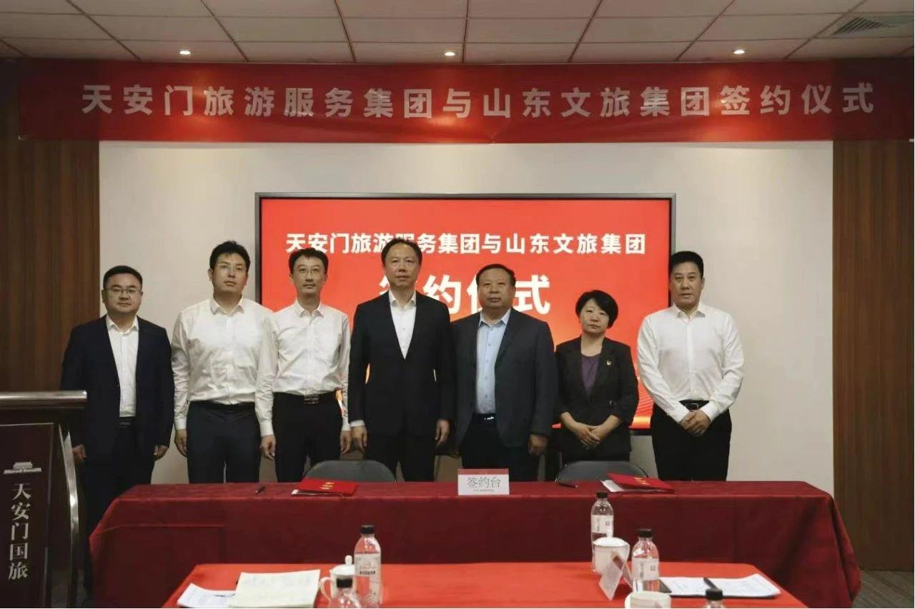 9月25日,山東文旅集團(tuán)與北京市天安門旅游服務(wù)集團(tuán)簽約儀式在北京舉行,集團(tuán)黨委委員、副總經(jīng)理?xiàng)罡昏?,北京市天安門旅游服務(wù)集團(tuán)副總經(jīng)理馬淑霞分別代表雙方上臺(tái)簽約。集團(tuán)黨委書記、董事長(zhǎng)丁藝,北京市天安門旅游服務(wù)集團(tuán)黨委副書記、總經(jīng)理郝剛出席儀式并見證簽約。