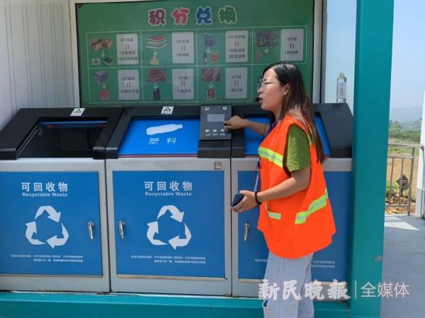 在生態(tài)化處理中心門口有一個(gè)現(xiàn)代化的垃圾分類積分兌換處,工作人員告訴記者,村民們可以利用可回收物品到積分兌換處兌換肥皂、毛巾、洗潔精等日常生活用品,也可以兌換處理中心生產(chǎn)的有機(jī)肥。