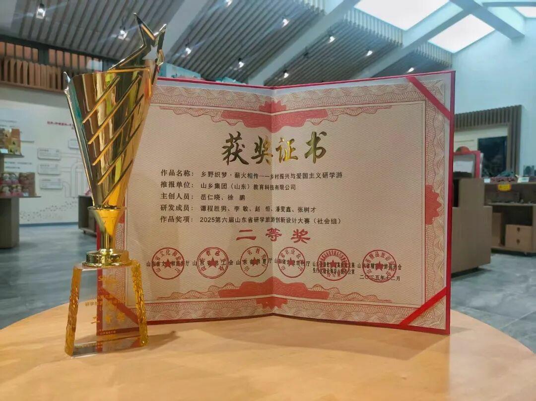 12月23日,2025年第六屆山東省研學(xué)旅游創(chuàng)新設(shè)計大賽頒獎典禮圓滿落下帷幕。山鄉(xiāng)集團(tuán)(山東)教育科技有限公司(以下簡稱“山鄉(xiāng)教育科技”)研發(fā)的《鄉(xiāng)野織夢·薪火相傳——鄉(xiāng)村振興與愛國主義研學(xué)游》線路榮獲大賽二等獎。