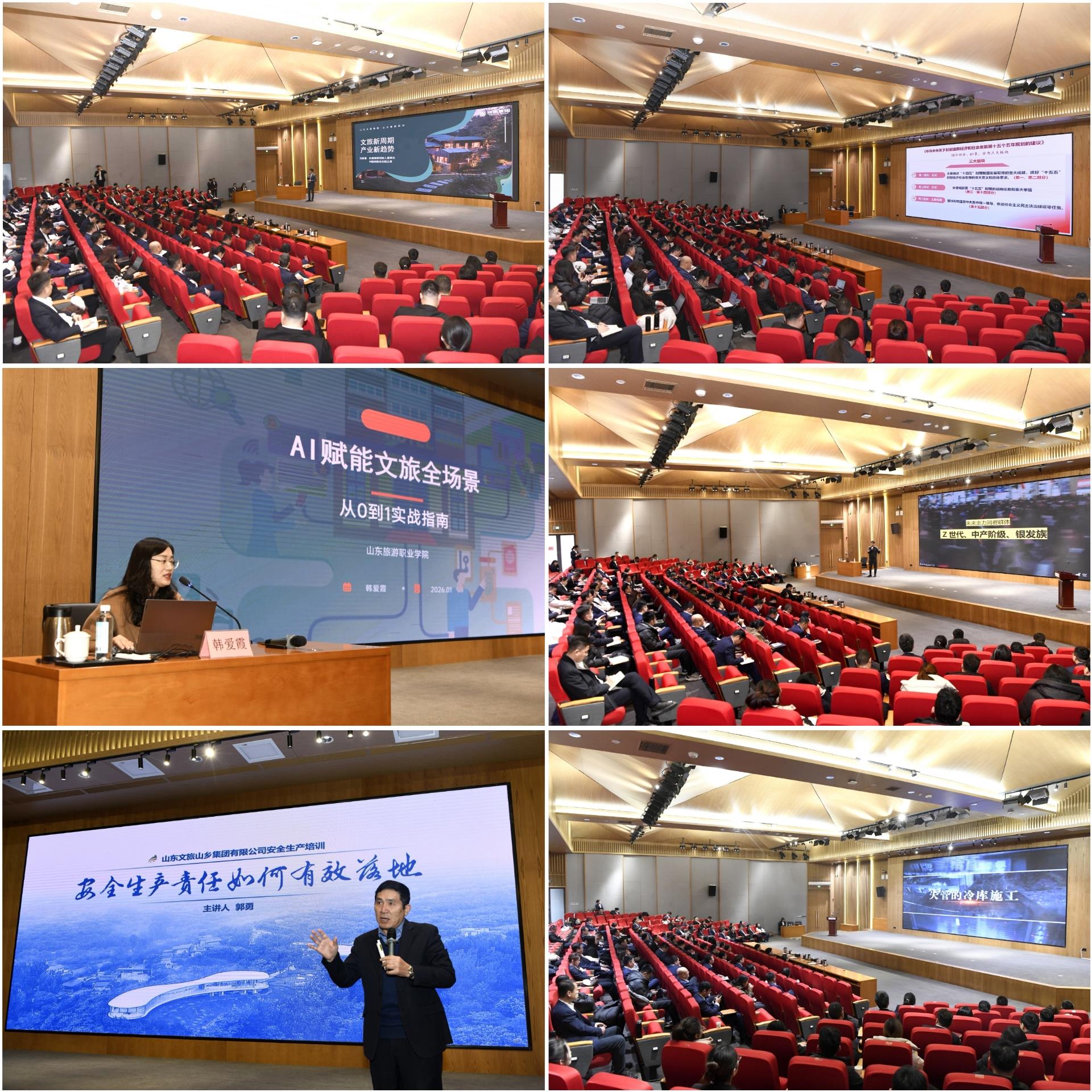 1月12日至13日,公司組織開展能力提升專題培訓(xùn),五名行業(yè)專家分別以《文旅新周期 產(chǎn)業(yè)新趨勢》《奮力開創(chuàng)中國式現(xiàn)代化建設(shè)新局面——學(xué)習(xí)貫徹黨的二十屆四中全會精神》《AI賦能文旅全場景:從0到1實戰(zhàn)指南》《回顧2025年文旅市場的一些感知》《安全生產(chǎn)責(zé)任如何有效落地》為題,進行專題授課。授課既對政策、理論、形勢進行深入淺出地闡釋,又有結(jié)合案例剖析、場景落地的實操指導(dǎo)。授課結(jié)束后集中觀看了《火災(zāi)猛于虎、責(zé)任重如山》安全警示教育片。參訓(xùn)學(xué)員認(rèn)真記錄,積極互動,在理論學(xué)習(xí)與思維碰撞中補齊能力短板。