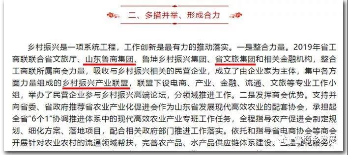近日,山東省鄉(xiāng)村振興產(chǎn)業(yè)聯(lián)盟(以下簡稱“鄉(xiāng)村振興產(chǎn)業(yè)聯(lián)盟”)工作情況匯報入選山東省工商聯(lián)《凝心聚力 服務(wù)大局 助力打造鄉(xiāng)村振興齊魯樣板》文章,該文章獲得全國政協(xié)副主席、全國工商聯(lián)主席高云龍的批示肯定。