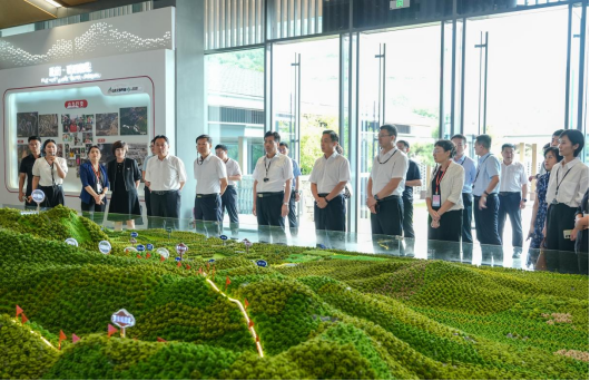 7月11日,高質(zhì)量黨建引領(lǐng)高質(zhì)量發(fā)展座談會暨全省機關(guān)黨建課題交流會與會人員集體到泰山九女峰鄉(xiāng)村振興示范區(qū)實地觀摩。省委省直機關(guān)工委副書記卞漢林參加活動,泰安市委常委、秘書長張穎,山東文旅集團黨委委員、副總經(jīng)理喬衛(wèi)東陪同。