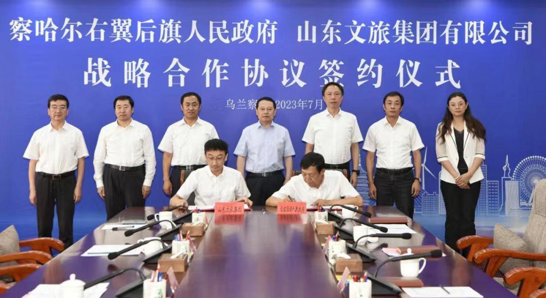 儀式上,山東文旅集團(tuán)黨委委員、副總經(jīng)理?xiàng)罡昏∨c察右后旗旗委副書記、旗長(zhǎng)張建賓代表雙方簽署戰(zhàn)略合作協(xié)議。雙方將加強(qiáng)在文旅產(chǎn)業(yè)和鄉(xiāng)村振興等方面的合作,做大做強(qiáng)面向全國(guó)的科考研學(xué)、觀光休閑、康養(yǎng)度假為一體的綜合性旅游目的地,建設(shè)鄉(xiāng)村振興的“邊疆樣板”。